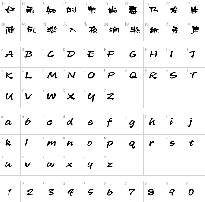 方正字汇-猫小皮手写体 简.ttf字体映射图