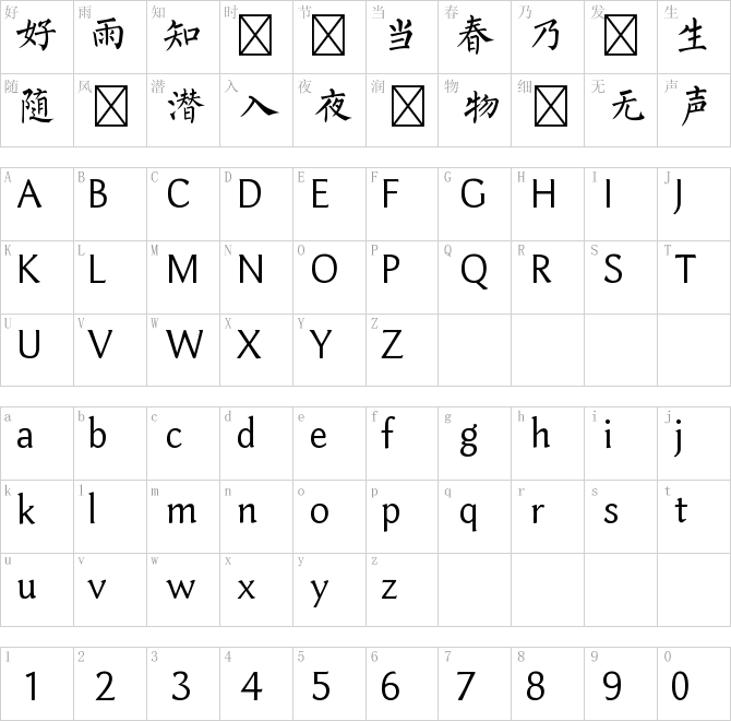 FZ Liu Gongquan Kai JP.ttf字体映射图