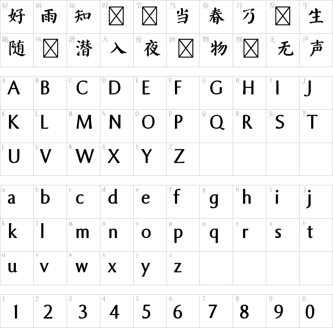 FZ Yan Zhenqing Kai JP.ttf字体映射图